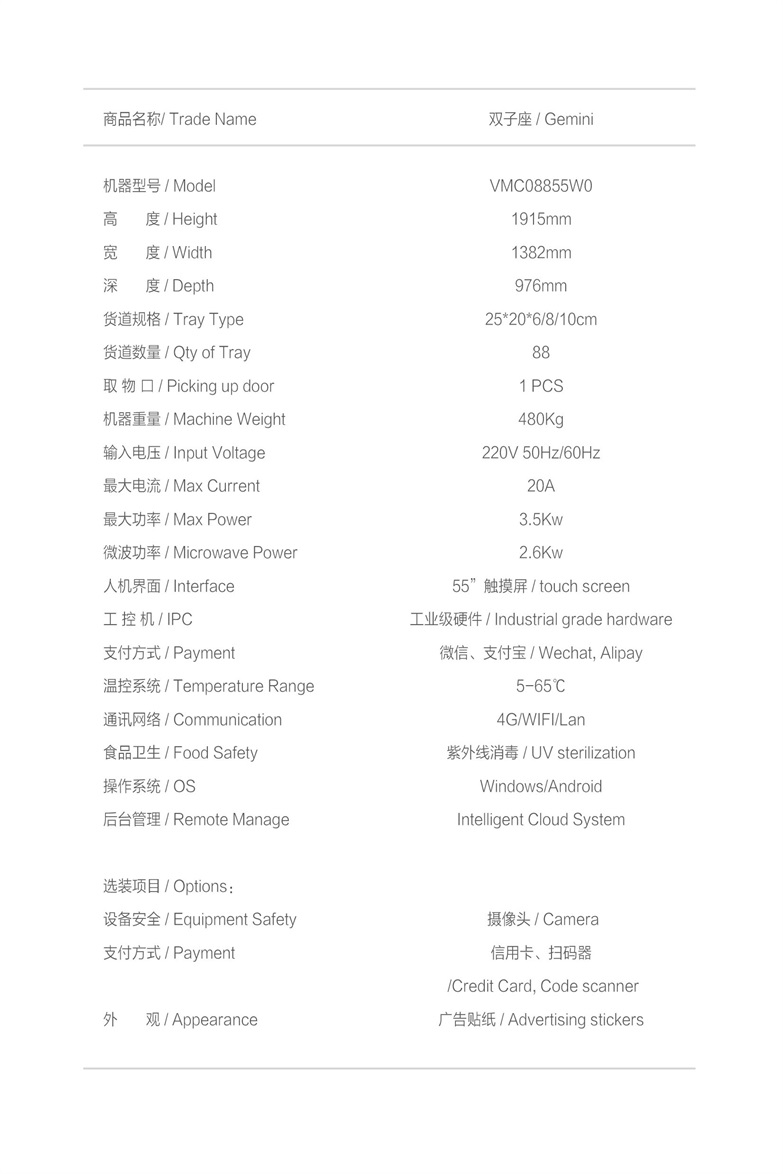 Gemini automatic microwave heating cold chain food vending machine
