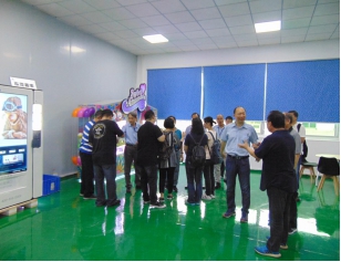 會后徐常董、吳常董及各運營總監(jiān)一起陪同各來訪領(lǐng)導(dǎo)到生產(chǎn)現(xiàn)場參觀考察;現(xiàn)場了解制造沖壓自動化機械手運用情況,及量測實驗室精密量測設(shè)備的使用情況;隨后,又參觀了販賣機、糖果機、咖啡機生產(chǎn)車間,從中整體了解了自動售賣系列產(chǎn)品的運行及后期維護情況,蔡會長及各企領(lǐng)導(dǎo)還現(xiàn)場體驗試用咖啡機及糖果機的效果。